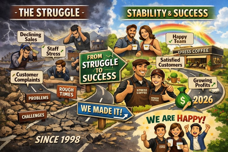 Today, in 2026, Xpress Coffee operates with approximately ₹36 lakh in monthly revenue, supported by direct commercial clients as well as B2B partnerships.