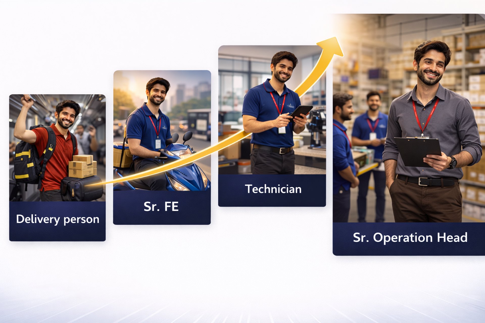 Delivery Partner ➜ Senior Field Executive ➜ Technician ➜ Field Operation Head